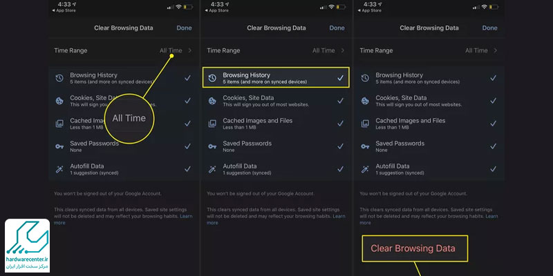 Autofill Form Data: اطلاعات فرم هایی را که به صورت خودکار ذخیره شده اند، پاک میکند.